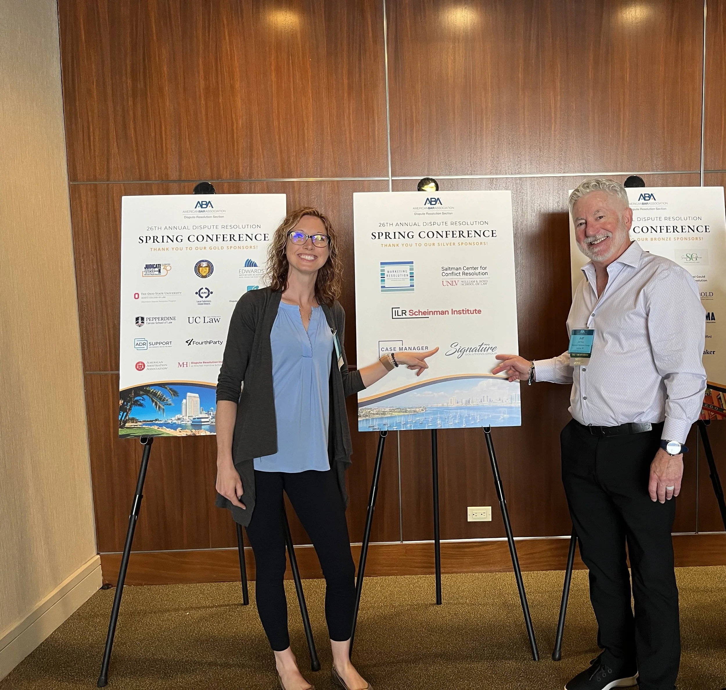 Jeff and Jenna represented the group at the American Bar Associations 2024 Spring Alternative Dispute Resolution Conference. Signature Solutions Group is always staying up to date on what’s happening in the world of conflict resolution. We are always ready provide the best tools and tips for the best practices in conflict resolution.